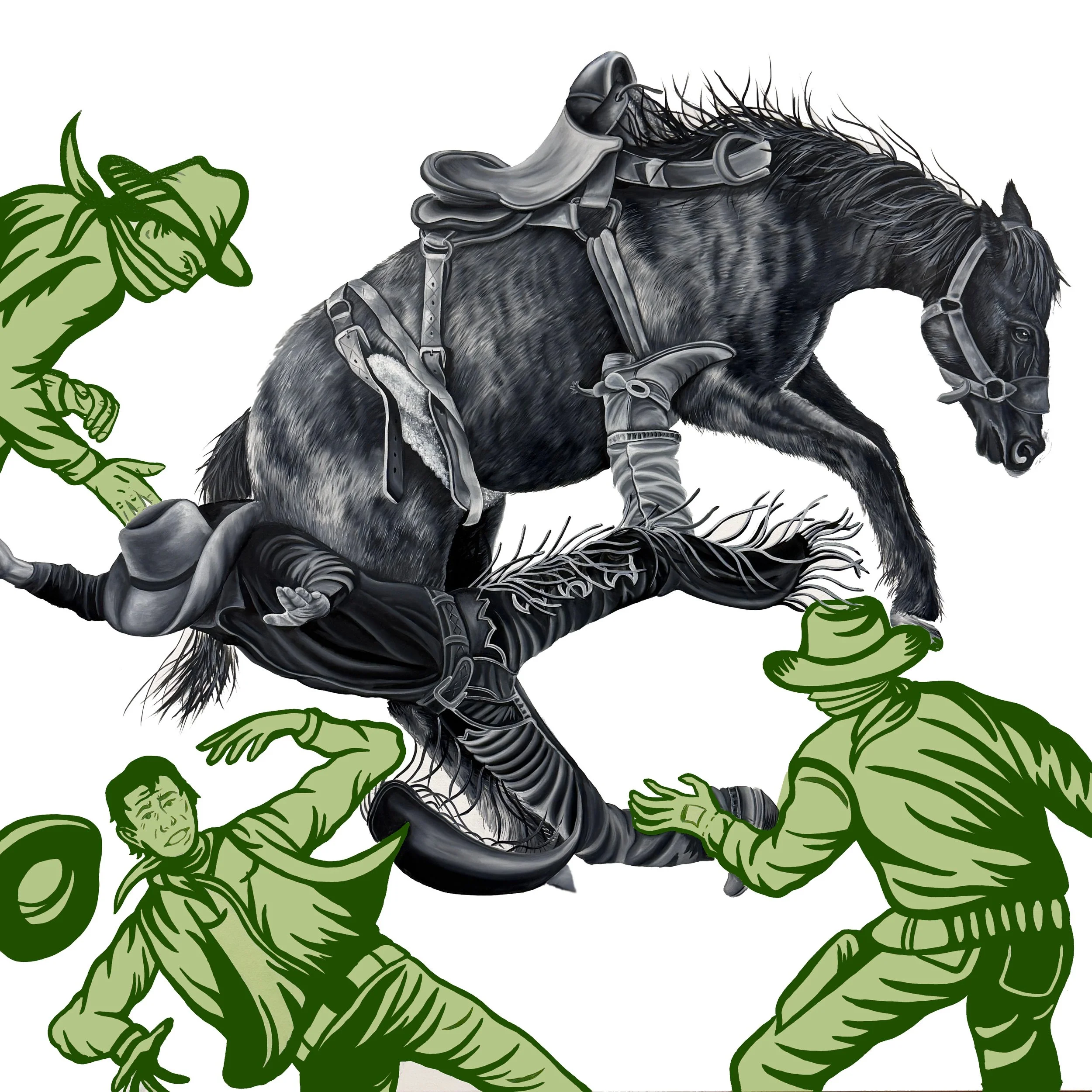 COWBOYS & THEIR THEATRICS 2025 36x36 OIL ON CANVAS